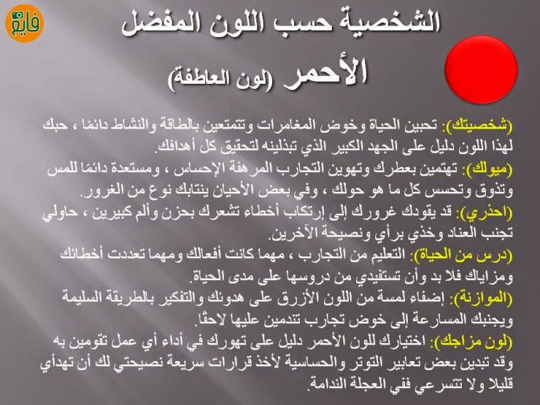 تحليل الشخصية من اللون المفضل. كيف تعرف شخصك من لونك المفضل. اعتبر محللي النفس ان الألوان تلعب دورا رئيسيا فى تحديد تحليل الشخصية وتعطي الكثير من الأمور التي تتعلق بالرغبات أو الضغوطات وما خلافه وهي تساعد على التعرف على هدوء أو غضب الأشخاص. المراجع فلسفة الألوان في تحليل الشخصي ة ي مكن وصف الألوان بأن ها. أهمية الألوان في الحياة.