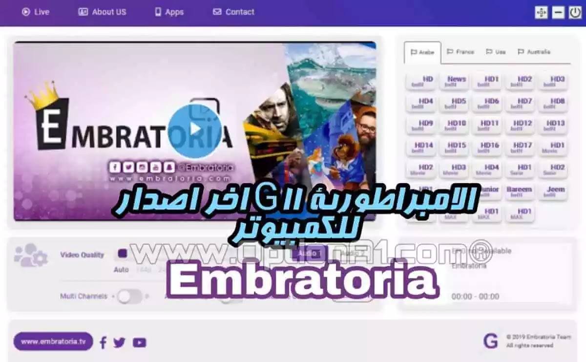 تحميل برنامج الامبراطورية 2019 اخر اصدار للكمبيوتر والاندرويد من تطبيق embratoria g10 2 مجانا برابط مباشر لمشاهدة قنوات بين سبورت الرياضية المشفرة من هنا. تحميل برنامج الامبراطورية اخر اصدار للكمبيوتر. كما ذكرنا يمكنك تحميل برنامج الامبراطورية للكمبيوتر مجانا برابط تحميل مباشر حتى تستمتع بمشاهدة وتشغيل قنوات بي ان سبورت الرياضية المشفرة على الكمبيوتر. اذا كنت تبحث عن افضل برنامج لمشاهدة المباريات فيبقى الامبراطورية g11 او ما يسمى embratoria و يمكنك تحميل امبراطورية g11 للكمبيوتر مجاناو مع طريقة التفعيل.