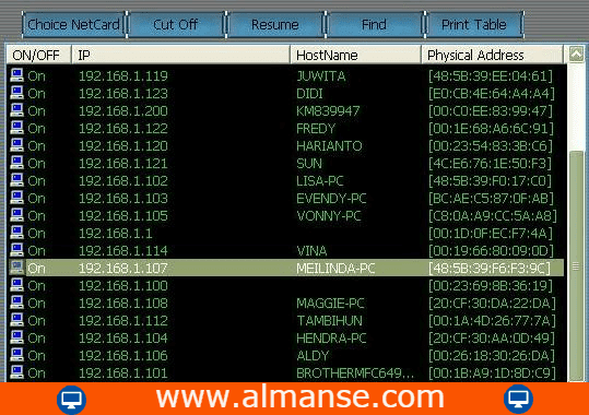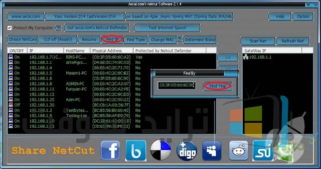 برنامج نت كت netcut يمكن أن يساعدك على معرفة بالضبط من يشاركك شبكة الواي فاي الخاصة بك من خلال معرفة الأي بي الخاص بجهاز الكمبيوتر أو اسم الجهاز أو عنوان الماك ادريس نت كت netcut يمكنه تحديد الأجهزة التي على الشبكة بما في ذلك أجهزة الأيفون والأيباد والهواتف المحمولة وأكثر من.