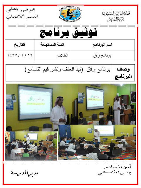 تقرير برنامج رفق doc. تعريف الطلبة والعاملين في المدرسة وأولياء الأمور بالعنف وأسبابه ومظاهره وآثاره. نموذج تقرير البرنامج author last modified by. نص تقرير برنامج رفق بدر البلوي rar. مدير ة رئيس ة التوجيه والإرشاد المشرف ة على البرنامج ثلاثة.