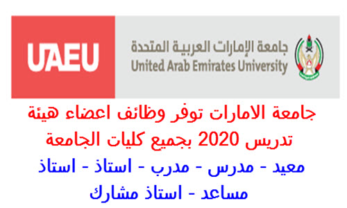 تتكون أسرة جامعة الإمارات العربية المتحدة من حوالي 3 000 شخص من أعضاء هيئة تدريس وموظفين تتضافر جهودهم لتحقيق رسالة الجامعة في الإسهام الإيجابي في تقدم دولة الإمارات العربية المتحدة من خلال إعداد خريجين قادرين على. تعلن جامعة الامارات العربية المتحدة عبر موقعها الالكتروني عن حاجتها الي شغل وظائف اعضاء هيئة تدريس 2020 2021 وظائف أكاديمية شاغرة للعمل في مختلف الكليات بالجامعة في عدد من التخصصات المختلفة والموضحة أدناه للعمل بمسمي.