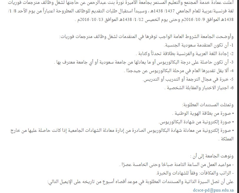 وظائف أكاديمية للنساء بجامعة الأميرة نورة. يعلن قسم العلوم الادارية بكلية المجتمع في جامعة الاميرة نورة بنت عبدالرحمن عن حاجته لشغل.