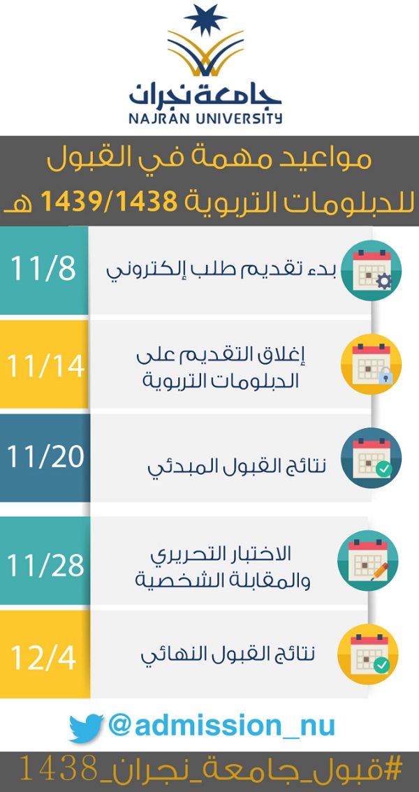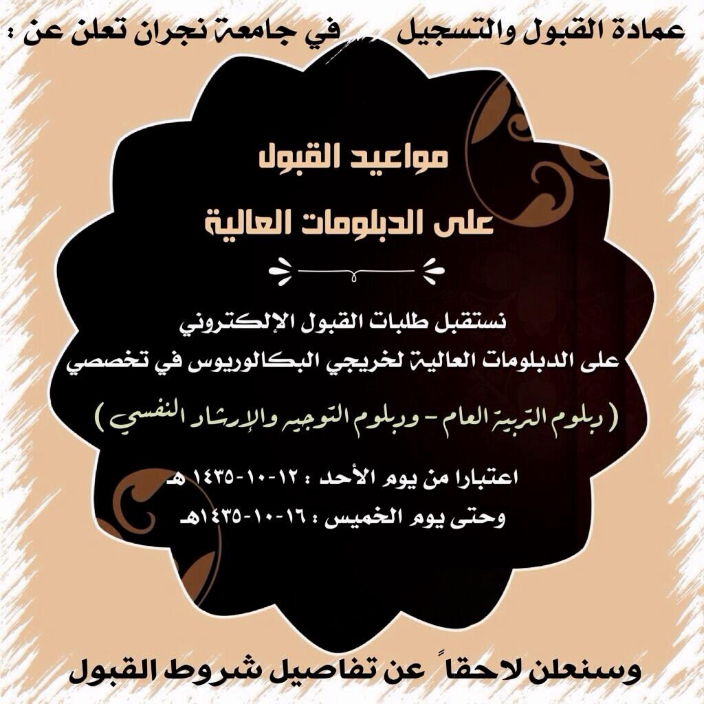 Address najran univserity المملكة العربية السعودية نجران طريق الملك عبدالعزيز ص ب 1988 فاكس. أعلنت جامعة نجران م مثلة في عمادة خدمة المجتمع والتعليم المستمر بدء التسجيل في دبلوم الموارد البشرية للبنين والبنات من ذوي الإعاقة من فئة الصم البكم وذلك وفقا للمواعيد والتفاصيل الموضحة أدناه.