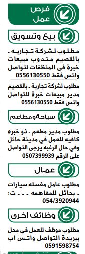 أحصل على وظيفة الآن فى السعودية و إنضم إلى الألاف ممن حصلوا على الوظائف من خلال موقع تنقيب. أعلن مجانا وأبحث عن كل إحتياجاتك الوسيلة علامة رائدة في مجال التسويق و الدعاية و الإعلان و كل ما يخص الإعلانات الشخصية والتجارية والإجتماعية. يمكنكم تصفح أحدث منشورات الوسيلة من خلال صفحة منشورات الوسيلة. جريدة الوسيلة الرياض.
